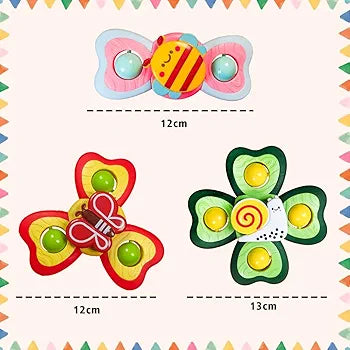 Suction Spinner Toy for Baby Bath Toys for Kids | Fidget Spinner Spinning Sensory Toddler Water Toy Sticks to Car Window Table High Chair Flight Travel Toy| Birthday Return Gift for Kids 3 Pcs| Sams world